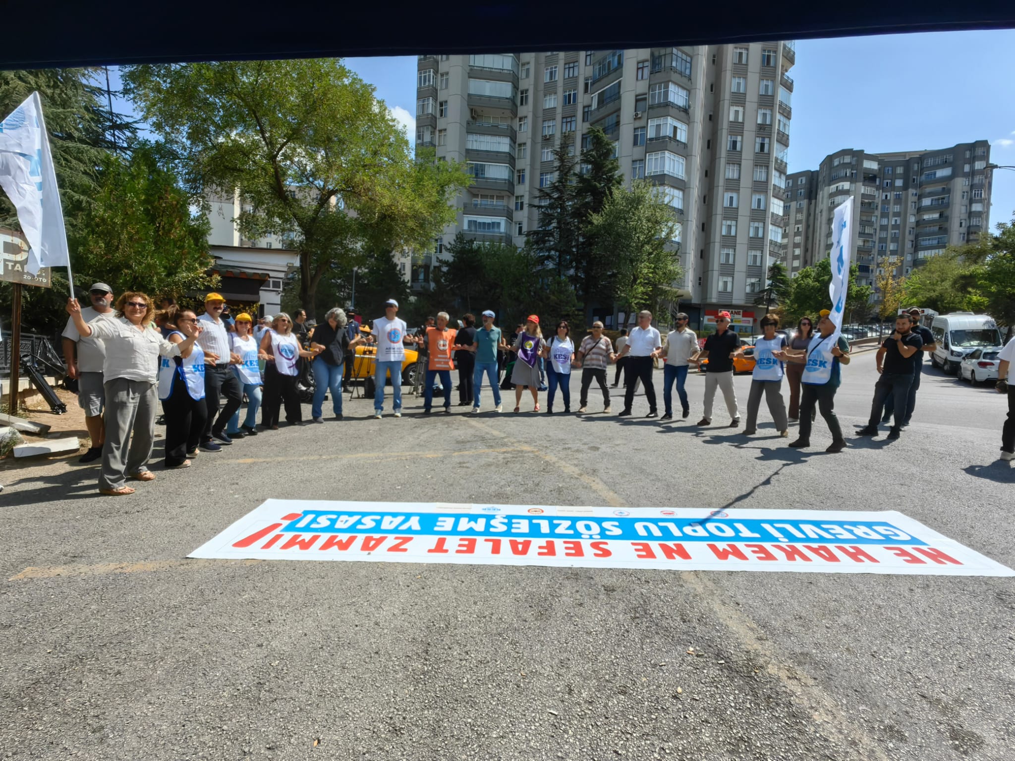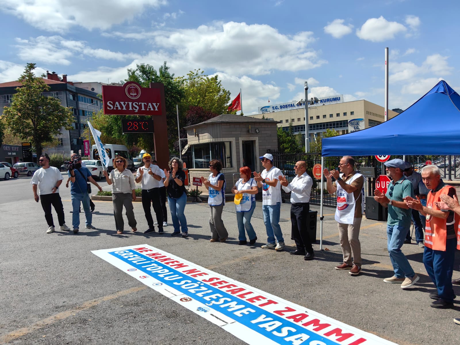 KESK, ASİM-SEN, BASK ve HAK-SEN olarak Hakem Heyeti toplantısının gerçekleştiği SAYIŞTAY önünde kuduğumuz izleme çadırında 3. Günde nöbet eylemindeyiz. Ne Hakem Ne Sefalet Zammı! Grevli Toplu Sözleşme Yasası!